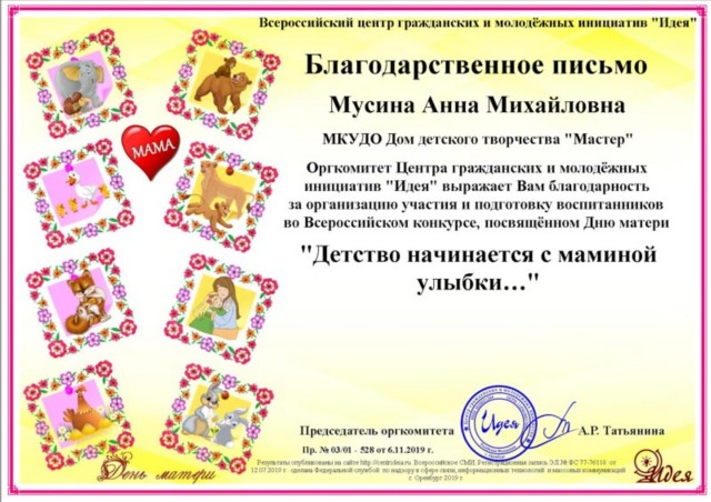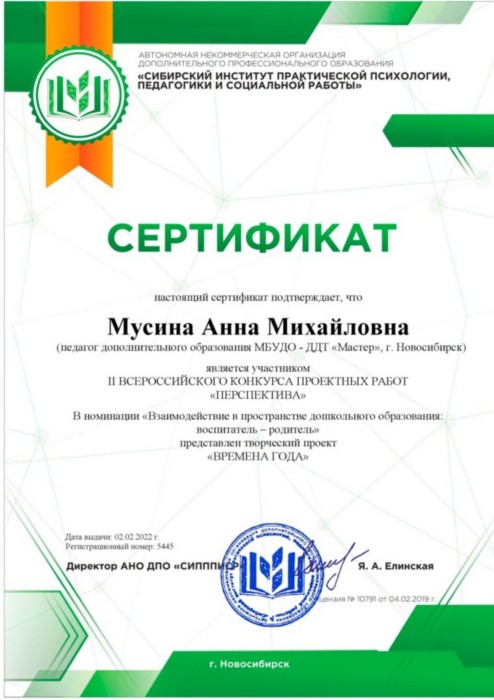 Руководитель студии гармоничного развития "Солнышко"