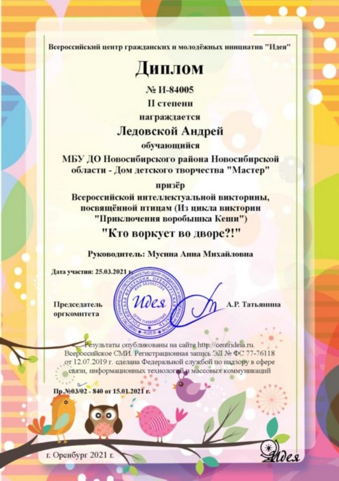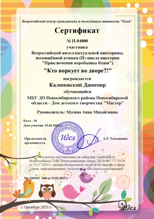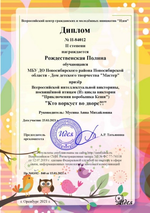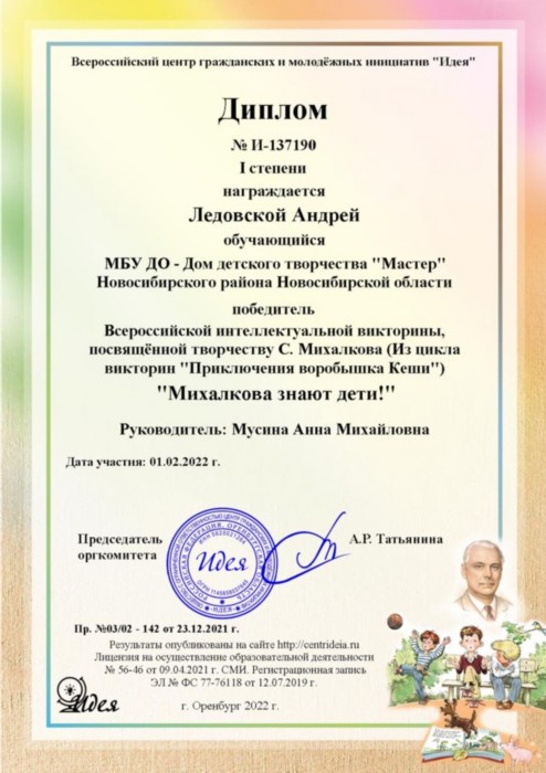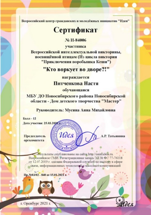 Достижения обучающихся студии гармоничного развития "Солнышко"